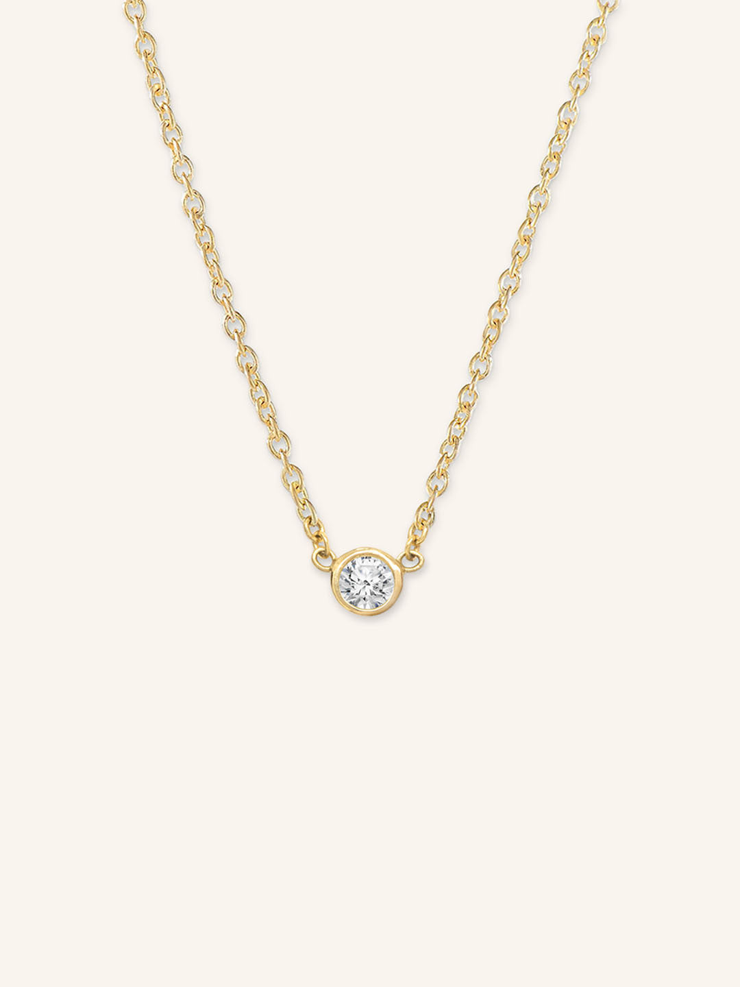 Fall in love with this gorgeously simple necklace. The Fall into Autumn Necklace is a dainty piece that features a solitaire center stone of your choice. The bezel setting captures the beauty of your chosen stone making this piece perfect for stacking.