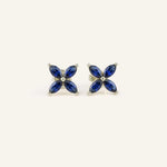 Pampillona Blue Sapphire Marquise Flower Stud Earrings