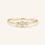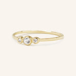 It's close to my finger, so it doesn't get caught on everything, and I love that it's white sapphires instead of diamonds. It also doesn't overwhelm my short, stubby fingers