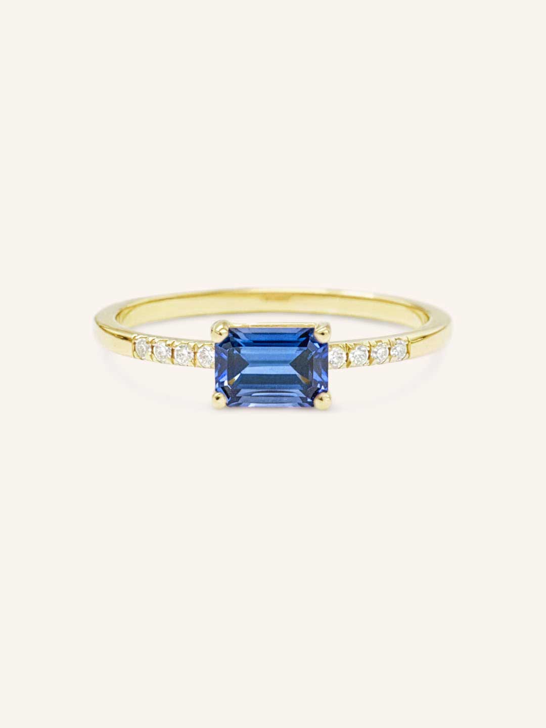 - One (1) Emerald Cut Natural Blue Sapphire (approx 0.75 ctw / 6x4mm, AA grading)