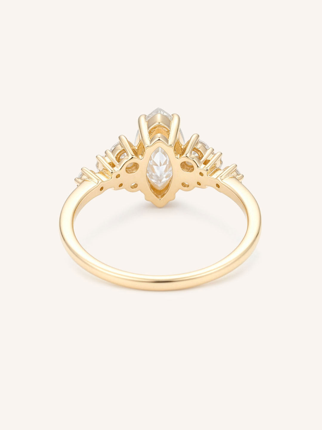 Featuring a marquise faceted lab-grown diamond, available in 8x4mm, 9x4.5mm, and 10x5mm size. *Sizes are approximate and measurements are subject to change/alter to fit. The center stone will come graded with a certified report.