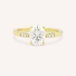Featuring an oval faceted lab-grown diamond, available in 7x5mm, 8x6mm, or 9x7mm size. *Sizes are approximate and measurements are subject to change/alter to fit. The center stone will come graded with a certified report.