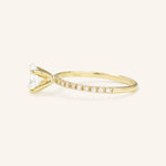 Like the moonlight sky itself, this engagement ring is made for twinkling and shining. The moissanite center stone - considered by some to be even more beautiful than diamonds, combined with a classic 4 prong diamond setting creates a delicate ring so simple and sweet that it's hard to resist.
