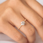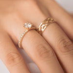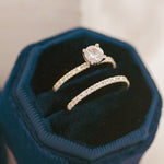 All of our engagement rings feature natural, lab-grown diamonds, and/or moissanites. They are ethically sourced and hand-selected for their quality and brilliance. Each product page specifies the stone type.