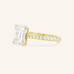 Featuring an emerald step cut lab-grown diamond, available in 7x5mm, 8x6mm, or 9x7mm size. *Sizes are approximate and measurements are subject to change/alter to fit. The center stone will come graded with a certified report.