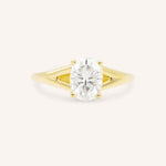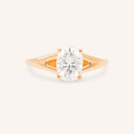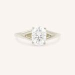 Featuring an oval faceted lab-grown diamond, available in 7x5mm or 8x6mm. *Sizes are approximate and measurements are subject to change/alter to fit. The center stone will come graded with a certified report.