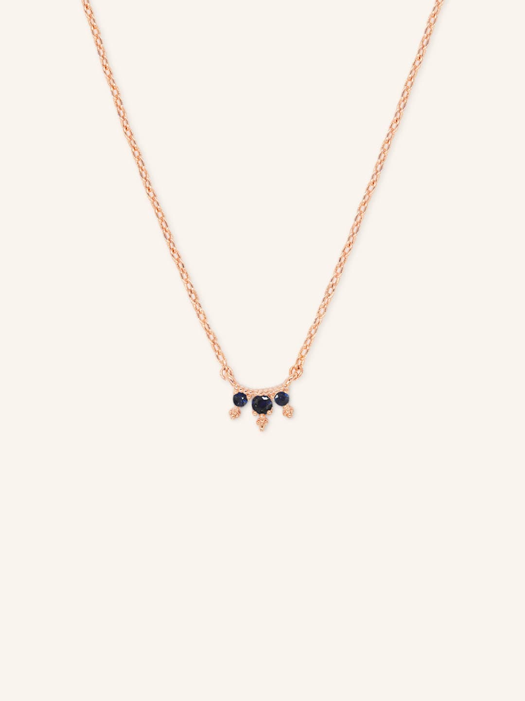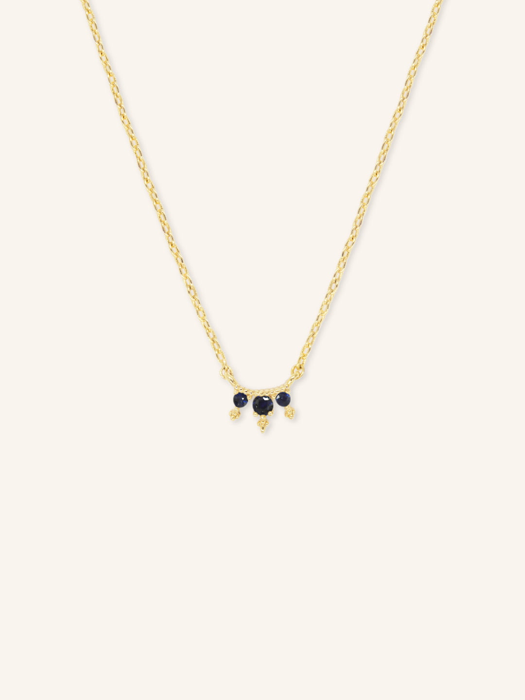 Soak in the revitalizing energy of the morning air. Welcome a new day with this solid 14K gold necklace that features 3 genuine blue sapphires. It will give you the perfect amount of shine you need to start the day right.
