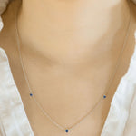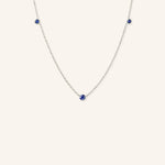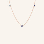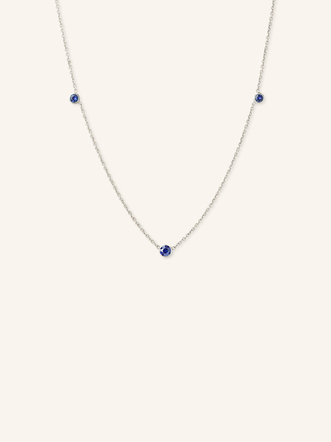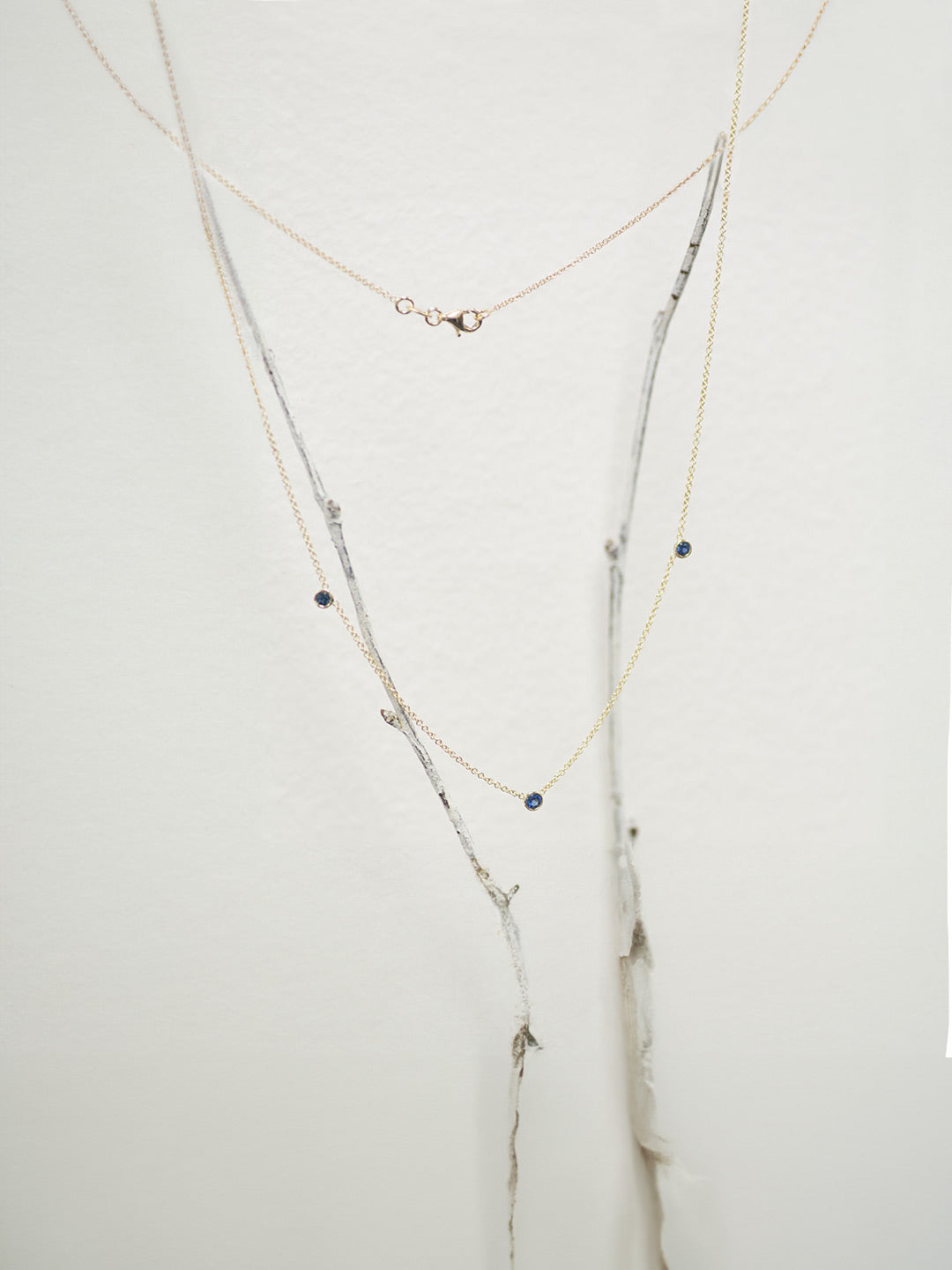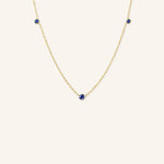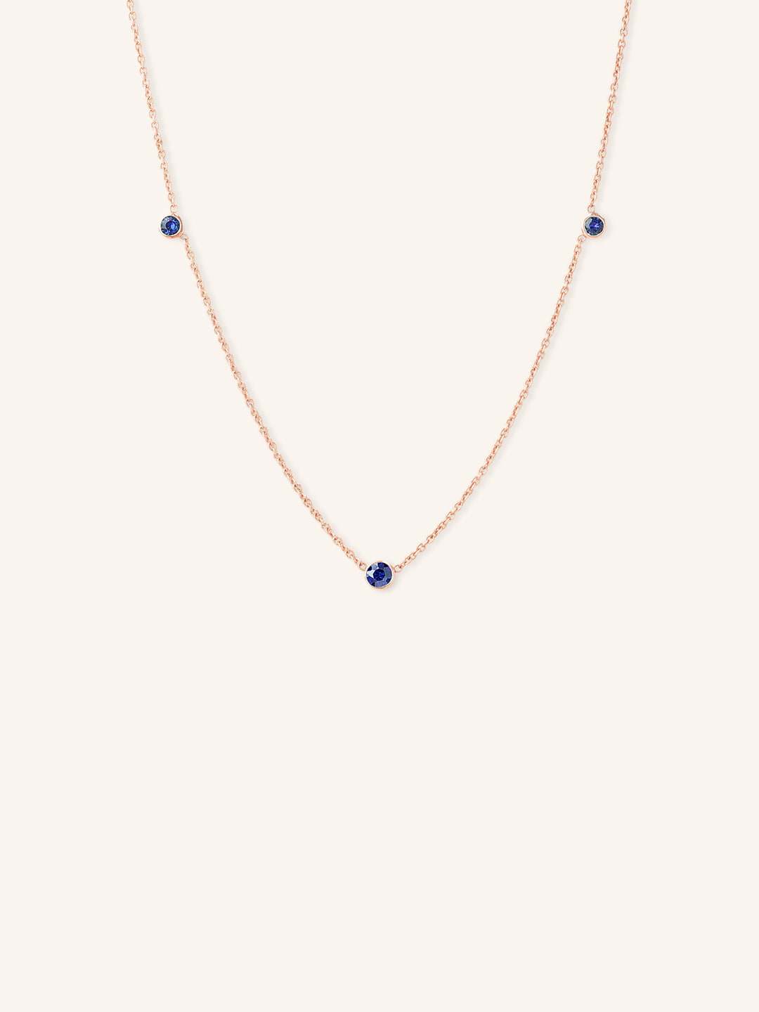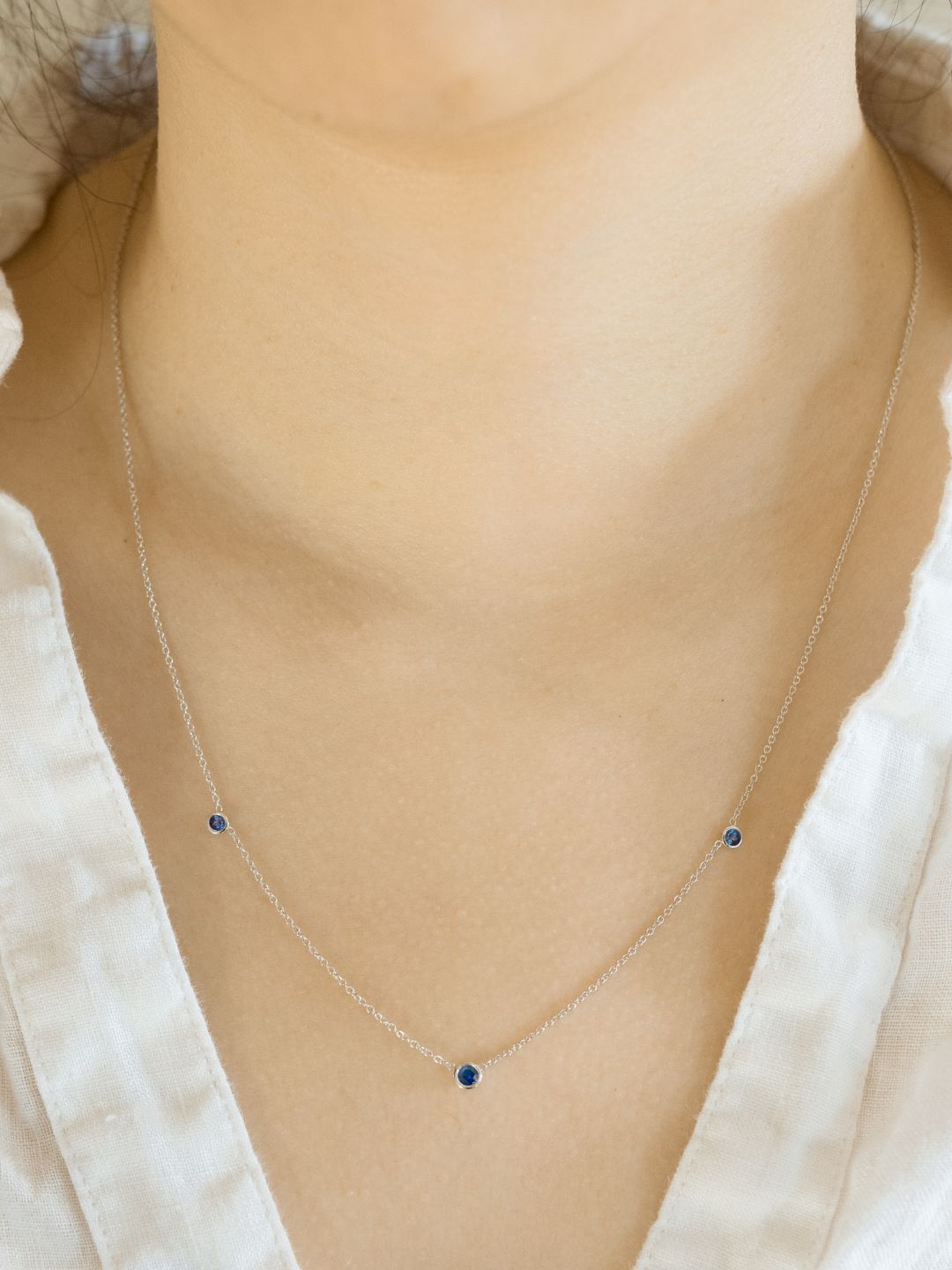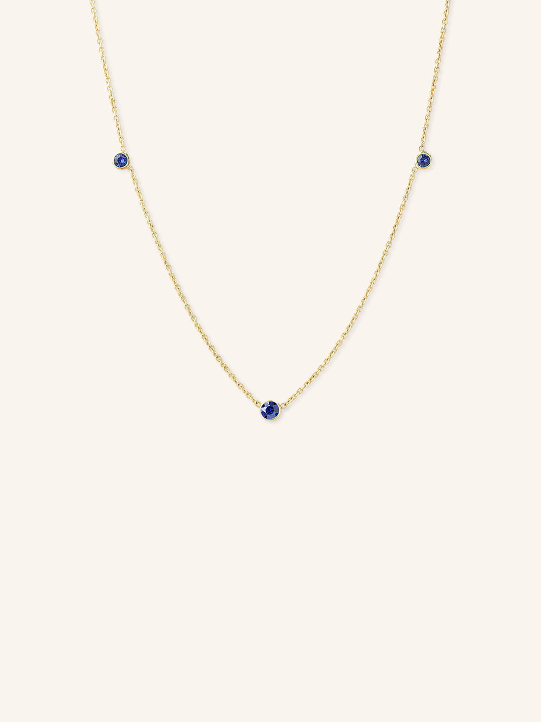 Solid 14k gold with three bezels laid on a single 1.30 mm cable chain with a choice of 16" or 18" length (available in yellow, white, or rose).