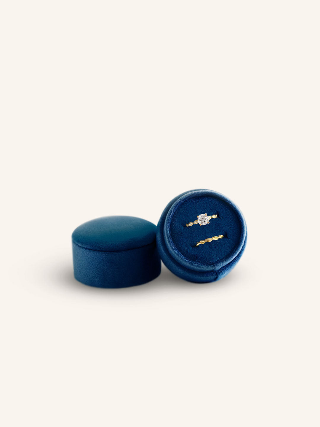 This double ring box is covered in soft velvet and features two slots to securely hold two rings in place.