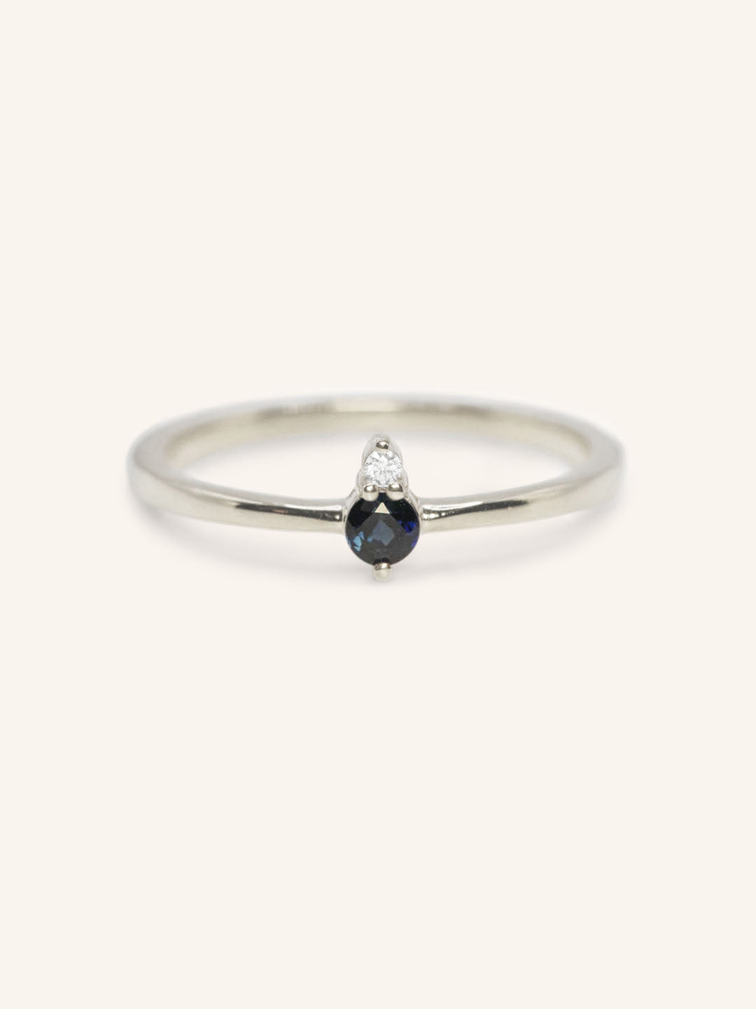 - One (1) Round Natural Blue Sapphire (approx 0.15 ctw / 3.00mm, AA grading)