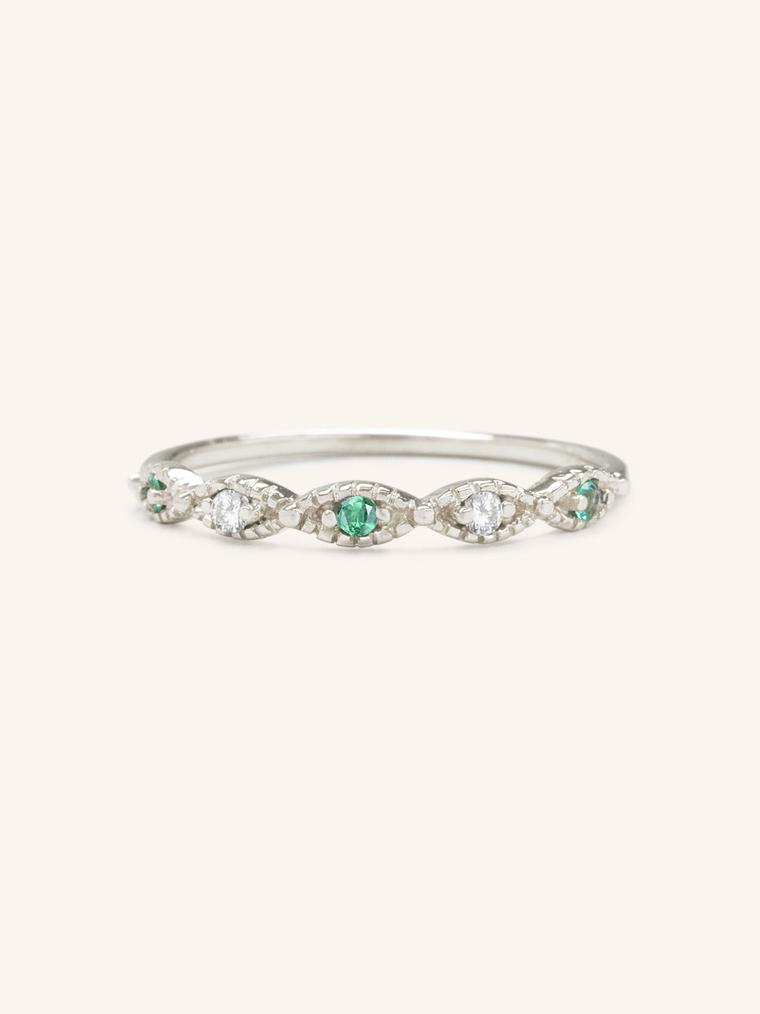 A timeless, elegant and sophisticated accessory for any occasion. This ring is designed to draw attention and make a statement. Featuring our custom cut design, with a special way of mixing metallic sequins and gemstones to create a truly unique look every time it is worn.
