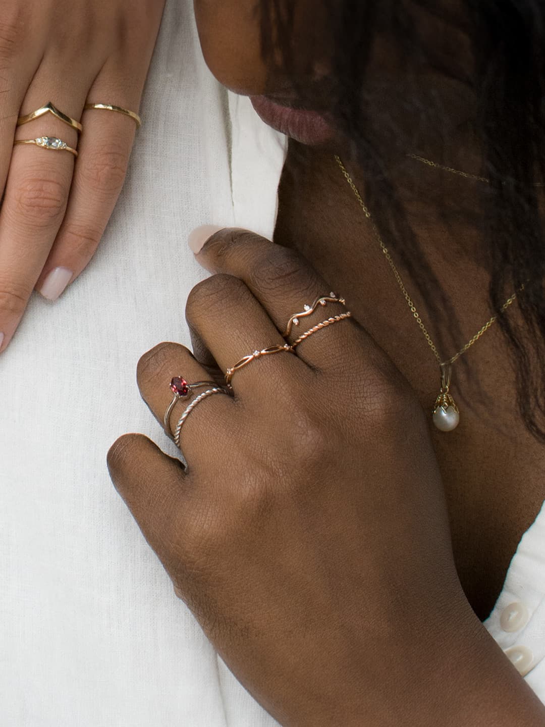 - Check for any loose stones or prongs. If something feels off, pause wearing the piece and contact our customer care team for support.