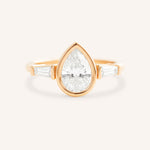 Featuring a pear faceted lab-grown diamond, available in 8x5mm, 9x5.5mm, and 10x6mm sizes. Sizes are approximate and measurements are subject to change/alter to fit. The center stone will come graded with a certified report.