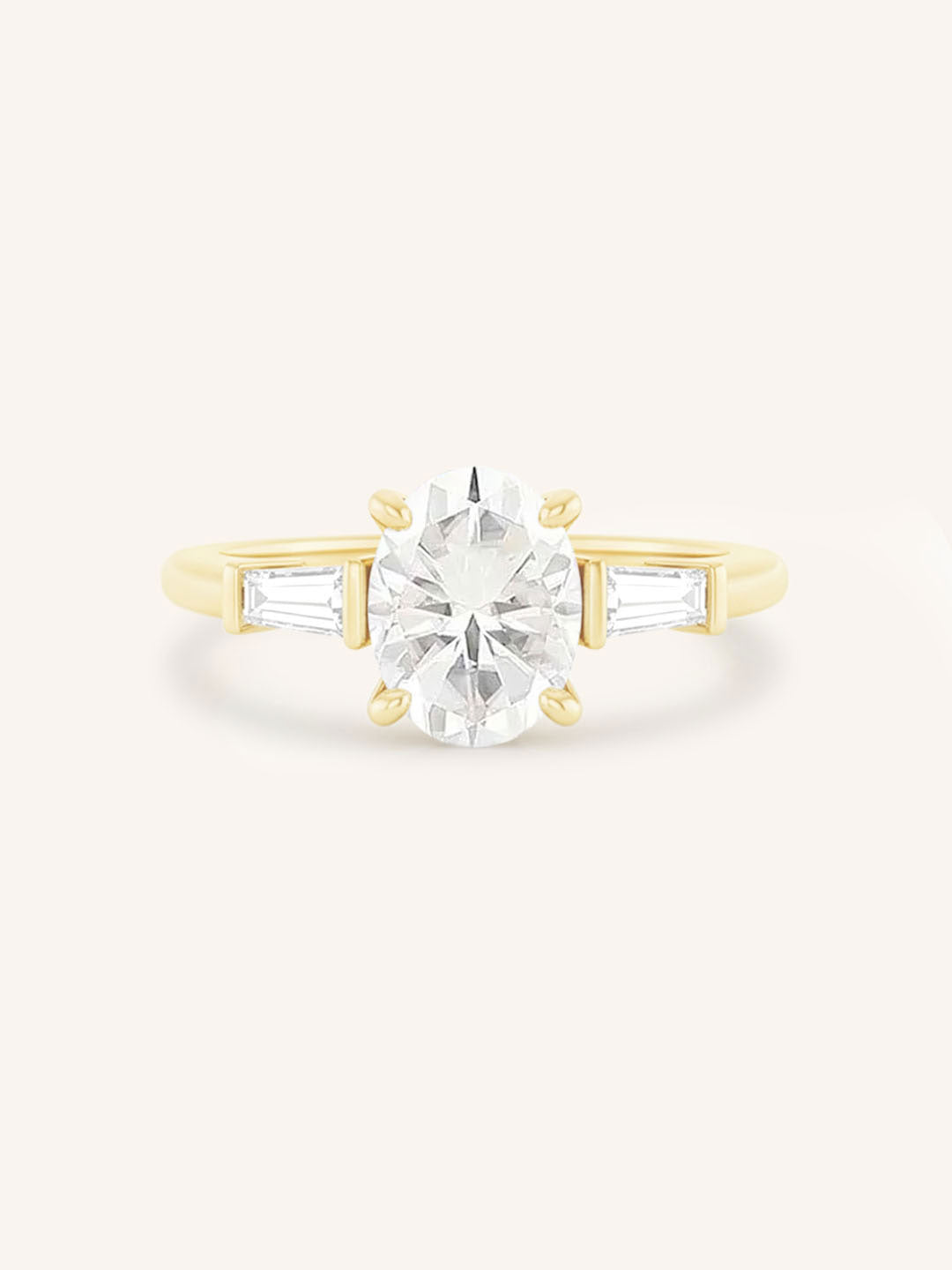 Featuring an oval faceted lab-grown diamond, available in 7x5mm, 8x6mm, or 9x7mm size. *Sizes are approximate and measurements are subject to change/alter to fit. The center stone will come graded with a certified report.