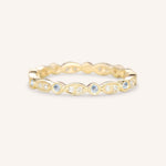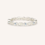 A delicate eternity band that blends soft color with timeless sparkle. This ring features alternating round birthstones and white diamonds set in a continuous pattern, each accented with fine milgrain detailing for a vintage-inspired finish. Crafted in solid 14k gold, it’s perfect for stacking, wearing as a wedding band, or marking a special occasion with meaning and elegance. Designed to be worn every day and cherished for a lifetime, this piece adds a graceful touch of light blue and brilliance to any jewelry collection.