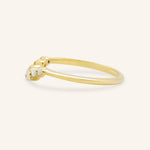 The Arella Curved Diamond Wedding Band features a graceful contour designed to complement your engagement ring perfectly. Set with shimmering diamonds, the gentle curve creates a seamless, elegant silhouette when stacked. Its refined design adds just the right touch of sparkle, making it a timeless addition to your bridal set or everyday stack.