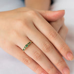 My wedding band in forest green tourmalines set in yellow gold is absolutely stunning! I am thrilled with the quality of the stones, the setting and I am honored to be wearing a ring made by such talented and perfectionistic jewelers! Thank you to aguildedleaf from the ordering process to the creation of my ring through the beautiful and thoughtful presentation box and all of the warm and caring communication all along the way!!