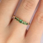 FIrst off I was so impressed with the packaging, it was unique and beautiful and a keepsake in itself. It made the entire experience of opening the package even more exciting. I was nervous about going with the rose gold because there weren't any reviews up for that finish, but I'm so glad I did, my ring looks classic but so unique, it's dainty but still eye catching. Everyone who has seen it has loved it too and couldn't believe the reasonable price for the quality. The green stones are lovely, I love the variation in colors that really stand out in the sunlight, the picture can't do it justice. It fits my eclectic and bohemian style but is classic enough to still obviously be my wedding ring which is exactly what I wanted. So much character! Love this shop!