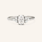 - One (1) Center Oval Faceted Lab-Grown Moissanite (approx 0.50ct / 6x4mm, DEF color)