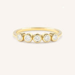 The Brookman Bezel 5-Stone Diamond Ring features a row of brilliant diamonds, each securely nestled in sleek bezel settings. This refined design highlights the beauty of each stone while ensuring a smooth, comfortable fit—perfect for everyday elegance or a meaningful milestone.