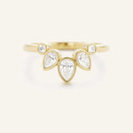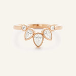 The Cardillo Curved Diamond Wedding Band features a graceful curve with bezel-set pear-shaped diamonds as its focal point, highlighted by round diamonds on each end. This distinctive design combines elegant curves and a modern bezel setting, making it a beautiful companion to an engagement ring. With its refined mix of diamond shapes and shimmering detail, the Cardillo band adds timeless sophistication to any bridal set.