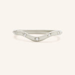 Elegant and timeless, the Cressida Curved Diamond Wedding Band features a gentle contour designed to nestle beautifully against your engagement ring. Set with a row of shimmering diamonds, it adds just the right touch of brilliance while enhancing the shape of your stack. A graceful choice for those who love refined, classic detail.