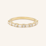 The Elvire Baguette Round Diamond Ring is a harmonious blend of modern elegance and timeless design. Featuring alternating baguette and round diamonds, this sophisticated ring creates a captivating pattern that exudes brilliance. Perfect as a statement piece, anniversary band, or wedding ring, the Elvire ring offers a refined and versatile style that celebrates life’s most cherished moments.
