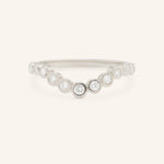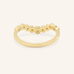The Glissade Curved Diamond Wedding Band features a stunning half eternity design with bezel-set diamonds, offering a sleek and modern look. Perfectly curved to sit beautifully with your engagement ring, this diamond wedding band is the ideal choice for those seeking elegance and durability. Celebrate your love with this timeless, secure, and stylish piece.