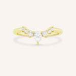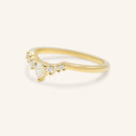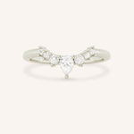 The Helene Curved Diamond Wedding Band is a graceful design featuring a subtle curve lined with sparkling diamonds. Its refined silhouette is perfect for accentuating your engagement ring or wearing on its own for a touch of understated brilliance. Timeless and elegant, it’s a stunning addition to your love story.