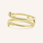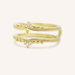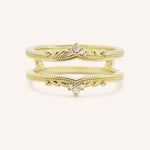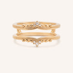 The Junellia Curved Diamond Milgrain Ring Guard features a gentle yet defined curve accented with diamonds placed at the center for just the right touch of sparkle. The band is framed with delicate milgrain edges, giving it a vintage-inspired charm. Designed to nestle against your engagement ring, it adds subtle elegance without overpowering the center stone.