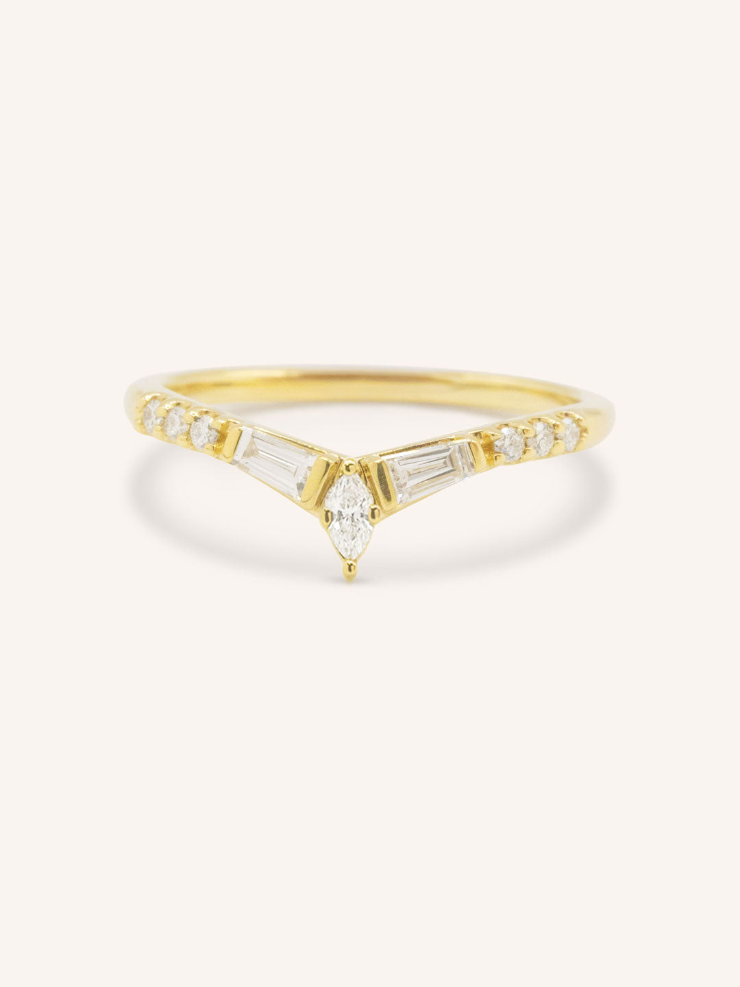 The Kurtia Curved Diamond Wedding Band is gracefully arched and accented with shimmering diamonds, designed to nestle seamlessly with your engagement ring. Its refined curve adds both elegance and harmony, making it a timeless choice for your wedding set.