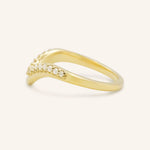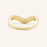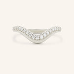 The Nicolasa Curved Diamond Wedding Band features a soft contour designed to pair beautifully with a variety of engagement ring styles. Set with a graceful line of round diamonds, its subtle curve enhances the overall brilliance without overwhelming the centerpiece. Perfect for those who appreciate understated sparkle with a touch of elegance.