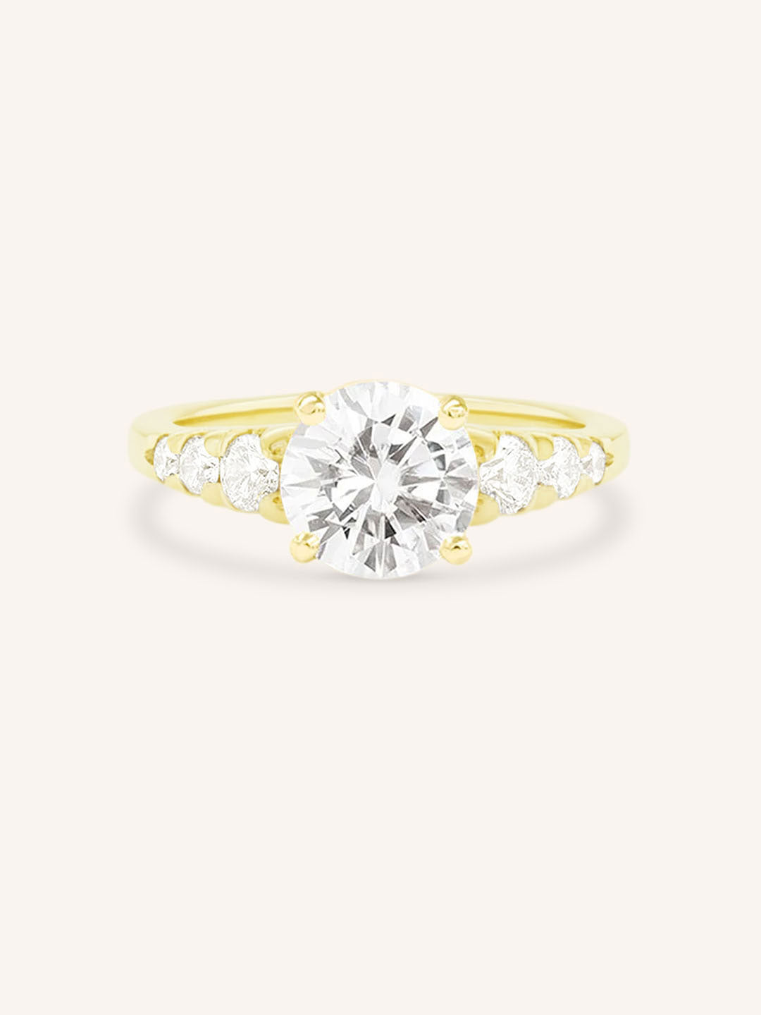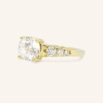Our Quincy Round Diamond Engagement Ring radiates timeless elegance with its stunning centerpiece and gracefully graduating side diamonds. The round diamond sparkles brilliantly, while the graduating diamonds on the band enhance its brilliance and create a seamless flow of light. Celebrate your unique love story with this exquisite, ethically crafted ring—make it yours today.