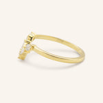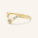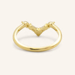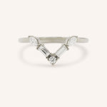The Rosalina V Diamond Wedding Band showcases a striking chevron design, featuring a mix of marquise, baguette, and round diamonds for a unique and elegant look. The combination of diamond shapes adds dimension and brilliance, making it a perfect pairing for an engagement ring or a standout piece on its own. A blend of modern style and timeless sophistication, this band is a beautiful symbol of love and commitment.
