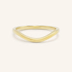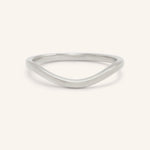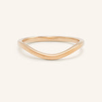 The Sylvan Chevron Nesting Ring is a graceful design featuring a subtle curved shape, perfect for stacking or wearing alone. Its sleek and minimal form makes it a versatile piece, seamlessly complementing engagement rings or other bands for a modern, layered look.