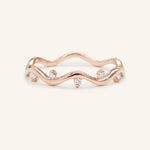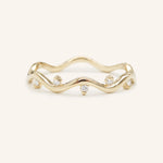 Our Diamond Path Ring was designed to give essence to the light reflecting off the soft waves of water from sun or moon. The diamonds reflect from the finger in a glitter path in delicate waves so simple and beautiful.