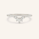 The Trecia Curved Diamond Wedding Band is a half-eternity design that features a graceful curve, showcasing marquise diamonds artfully arranged alongside round diamonds. This timeless and elegant piece is the perfect complement to your engagement ring or a stunning standalone choice to celebrate life’s most meaningful milestones.