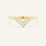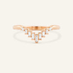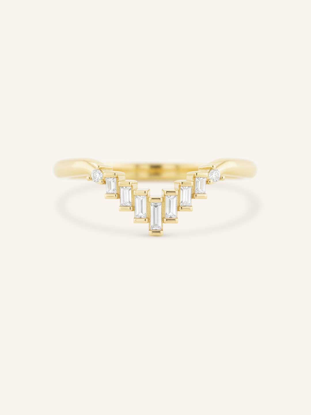 The Nile Curved Baguette and Round Diamond Band beautifully blends art deco charm with modern elegance. Its curved design allows for perfect nesting alongside other rings, enhancing your collection with sparkling baguette and round diamonds. Crafted to complement and stand out, this band adds a graceful touch to any jewelry ensemble.