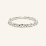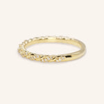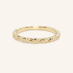The Woven Diamond Wedding Band showcases an elegant, braided design, symbolizing the beautiful intertwining of two lives. Crafted from 14k gold and adorned with pavé-set diamonds, this band offers a touch of sparkle and sophistication. Its intricate woven pattern makes it a perfect companion to the pavé twisted anniversary band, creating a timeless and harmonious set for your most cherished moments.