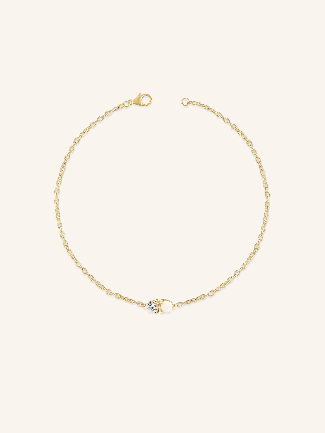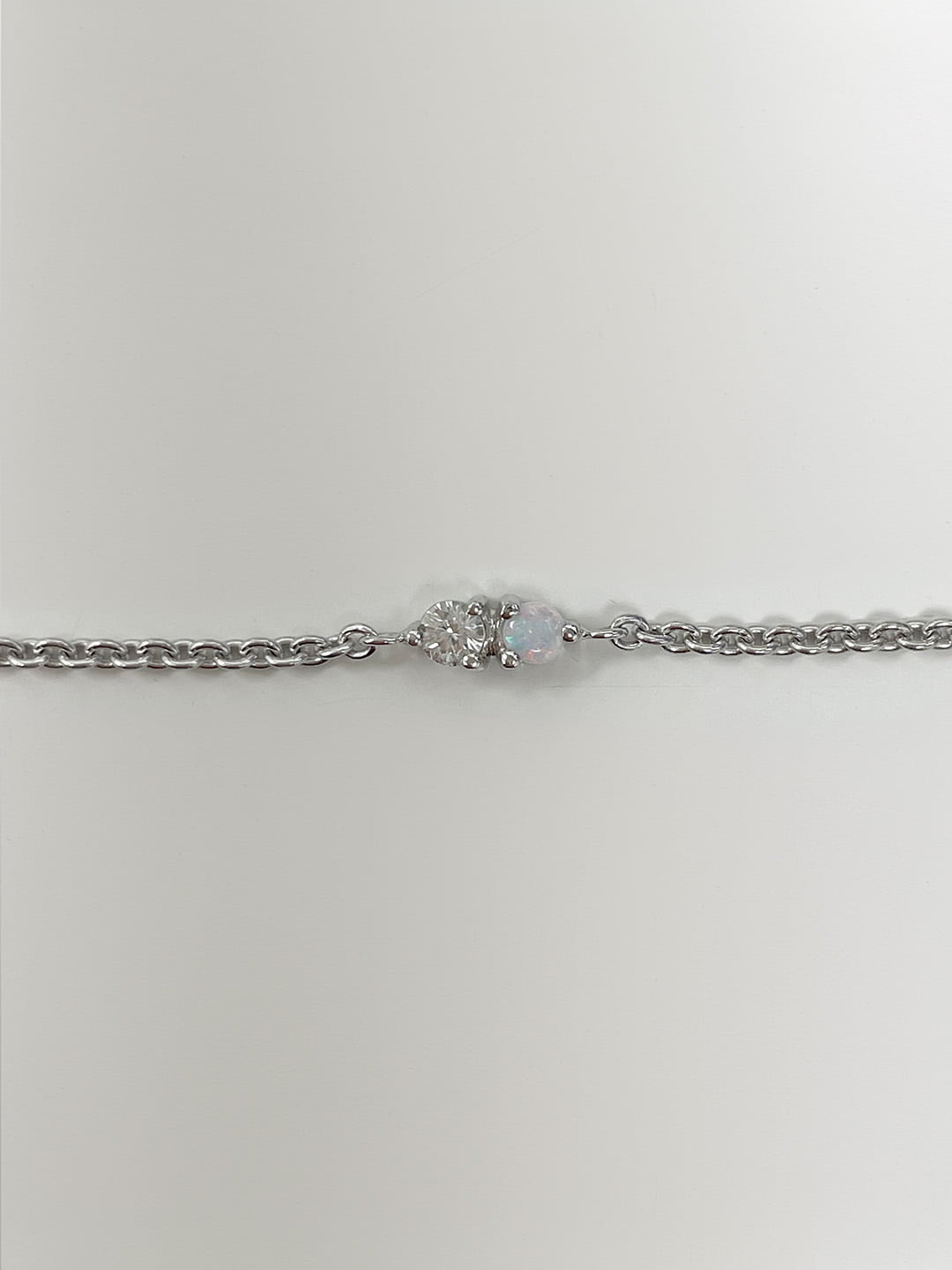 Add a chic touch to any outfit with this minimal, everyday Duo White Sapphire Opal Bracelet. Crafted from opal and white sapphire, this pairing of birthstones creates a sophisticated, timeless look that will never go out of style.