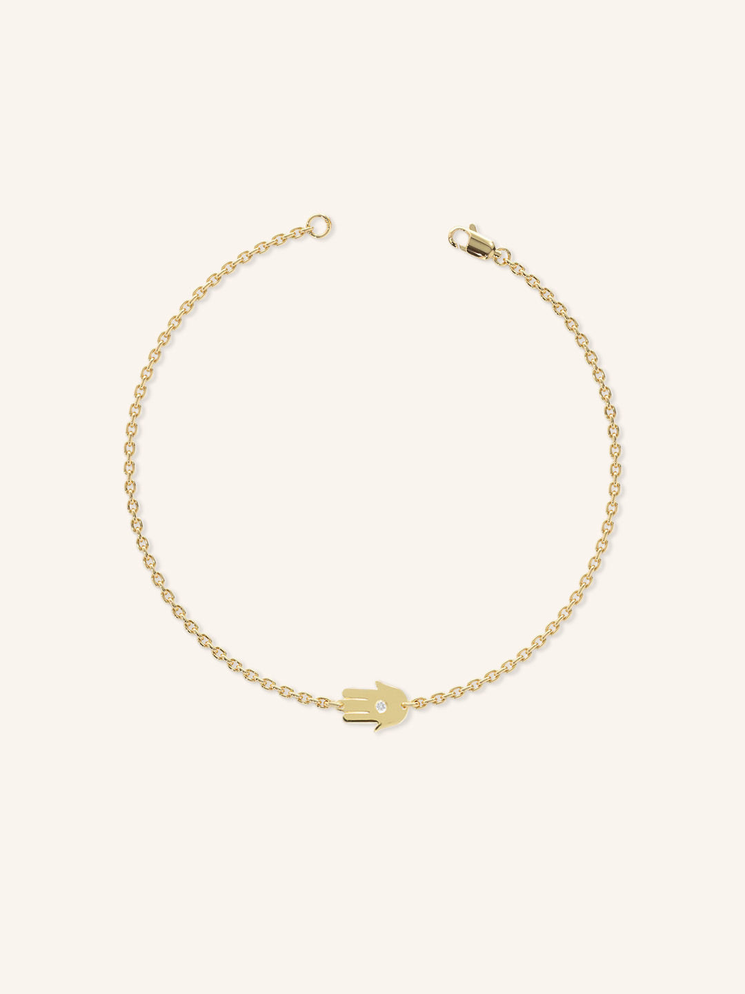 An ancient talisman that symbolizes feminine power, with the eye symbol on the hand is worn to protect the wearer against negative energy. We designed our hamsa collection to be minimally crafted in solid 14k gold with a single diamond representing the eye - this piece is meant to be easily worn everyday for the wearer to embrace the symbol of good, power, and strength.