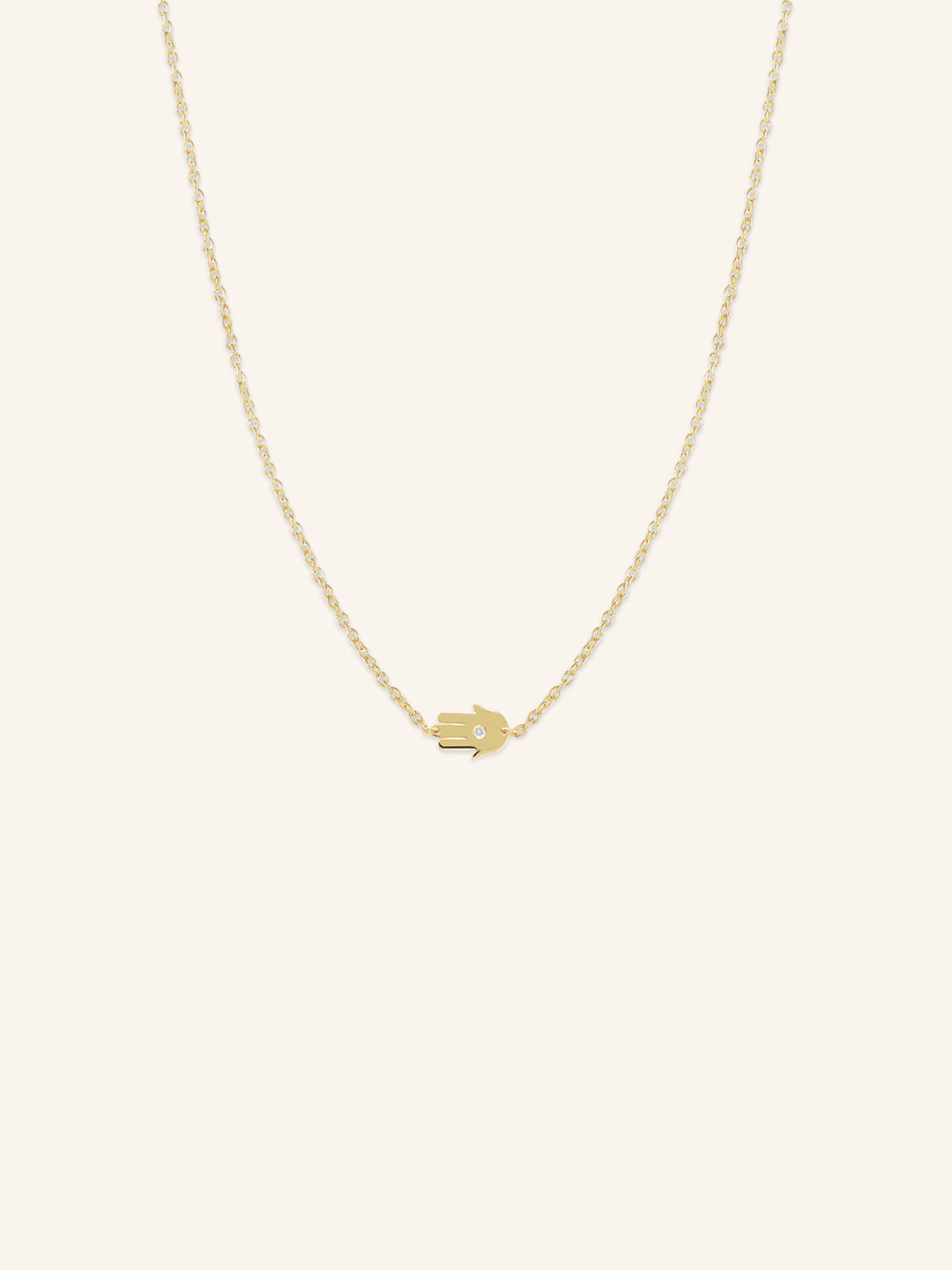 An ancient talisman that symbolizes feminine power, with the eye symbol on the hand is worn to protect the wearer against negative energy. We designed our hamsa collection to be minimally crafted in solid 14k gold with a single diamond representing the eye - this piece is meant to be easily worn everyday for the wearer to embrace the symbol of good, power, and strength.