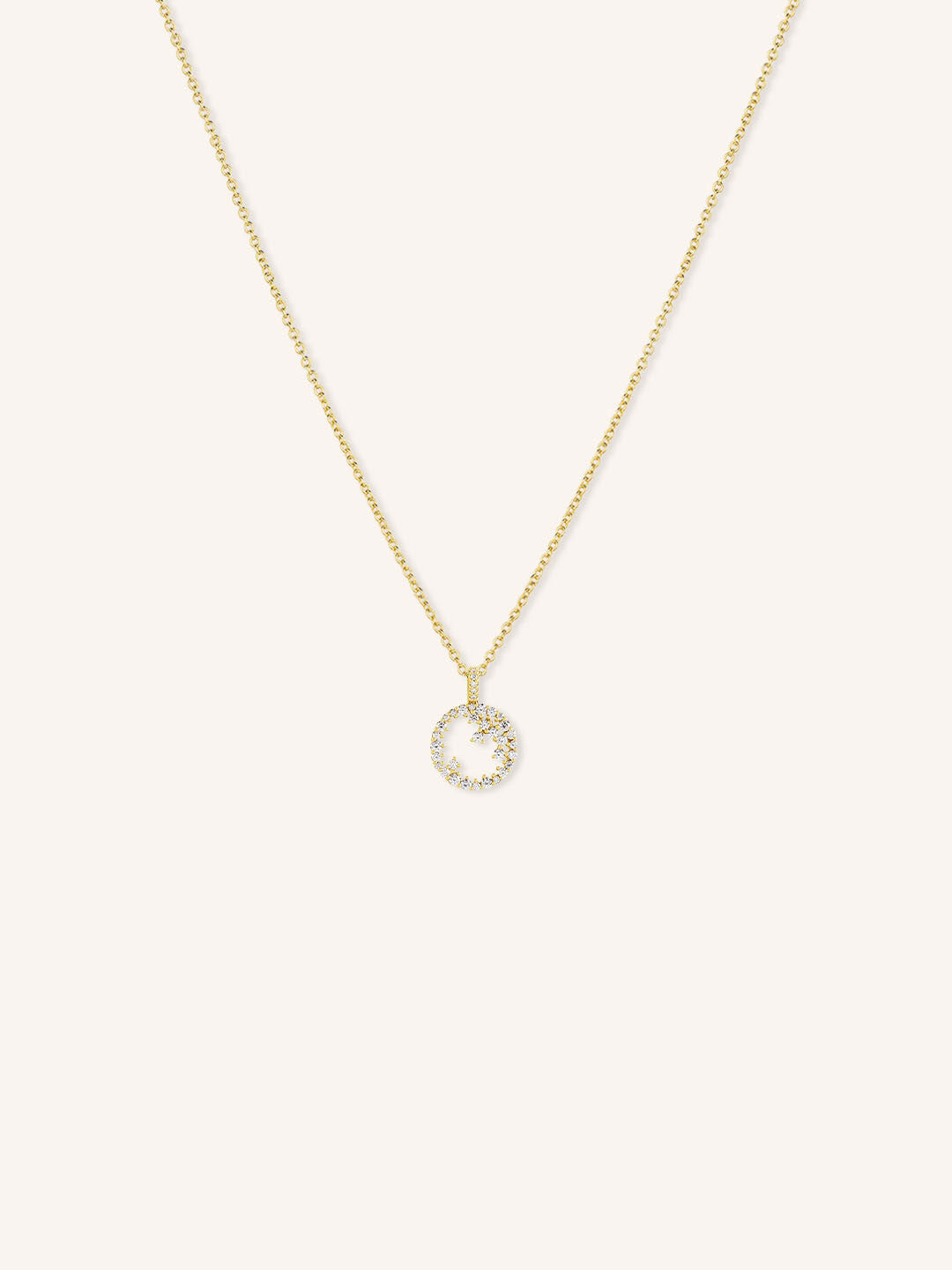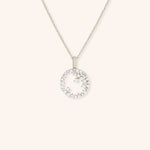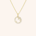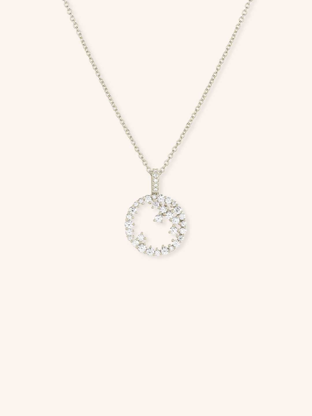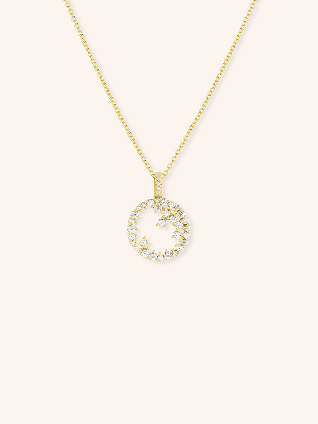 A modern take on timeless elegance, this necklace features a sleek open circle accented with diamonds placed in an artful scattered design. The airy arrangement creates subtle movement and sparkle, giving the pendant a contemporary yet versatile look that layers beautifully or shines on its own.