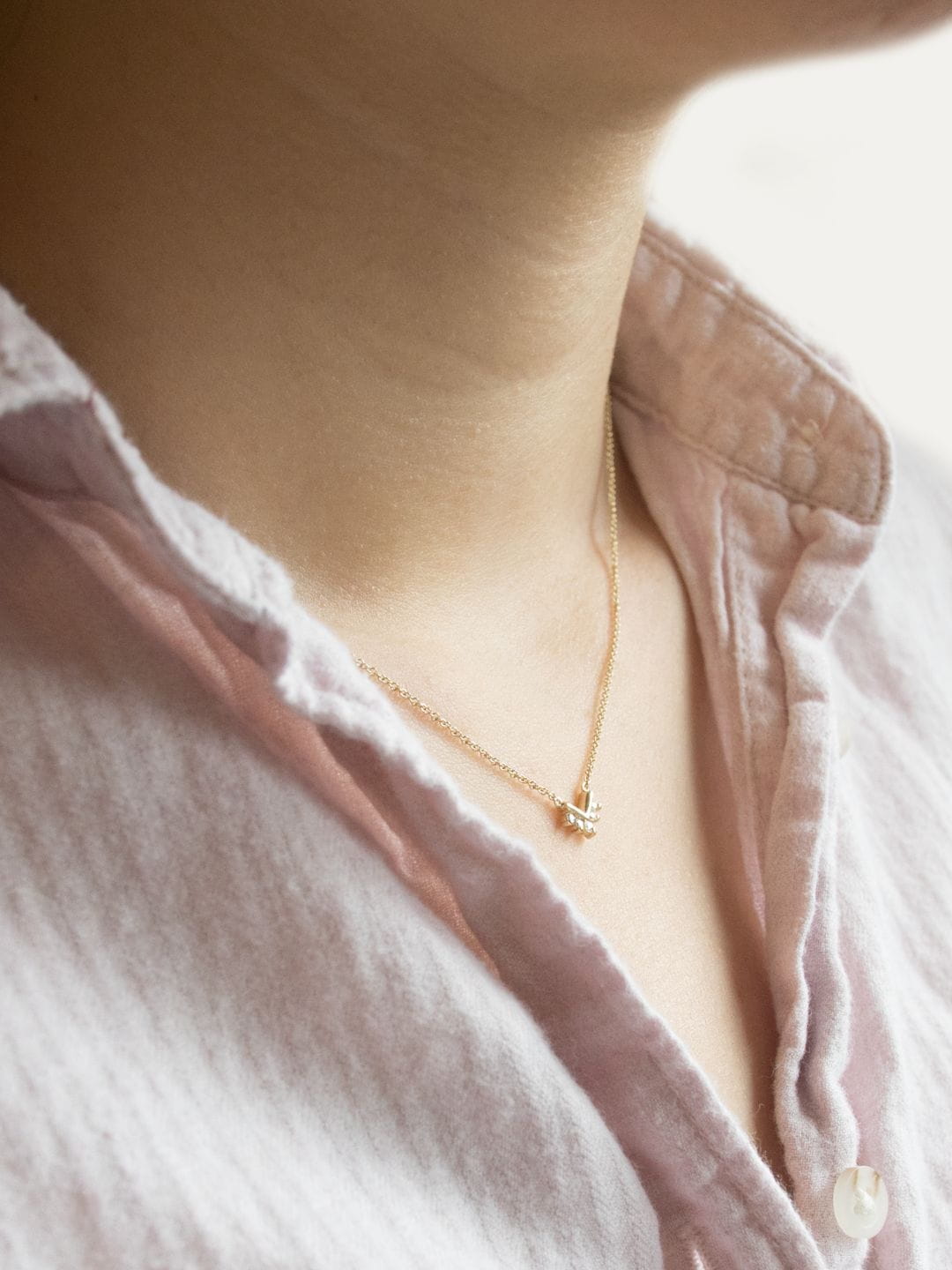 All of our necklaces are crafted from 14k solid gold. They are made to last and will not tarnish, fade, or discolor over time.
