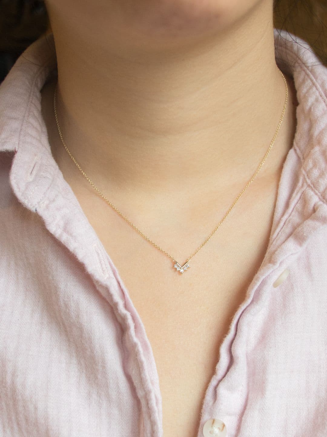 Stand out with a gorgeous diamond necklace. The Shaded Spruce Diamond Necklace is a dainty and lightweight piece that can be worn all the time. You'll stand out with this necklace as it contains 5 bright diamonds to add a little bit of shimmer.
