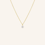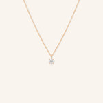 The Solitaire Prong-Set Round Diamond Pendant Necklace features a single, dazzling round diamond elegantly set in a classic 4-prong design, suspended from a delicate 14k gold chain. This timeless pendant adds a touch of refined sparkle, perfect for daily elegance or special occasions. With its minimalist appeal and radiant diamond, the Solitaire Pendant makes a sophisticated statement on its own or layered with other pieces.