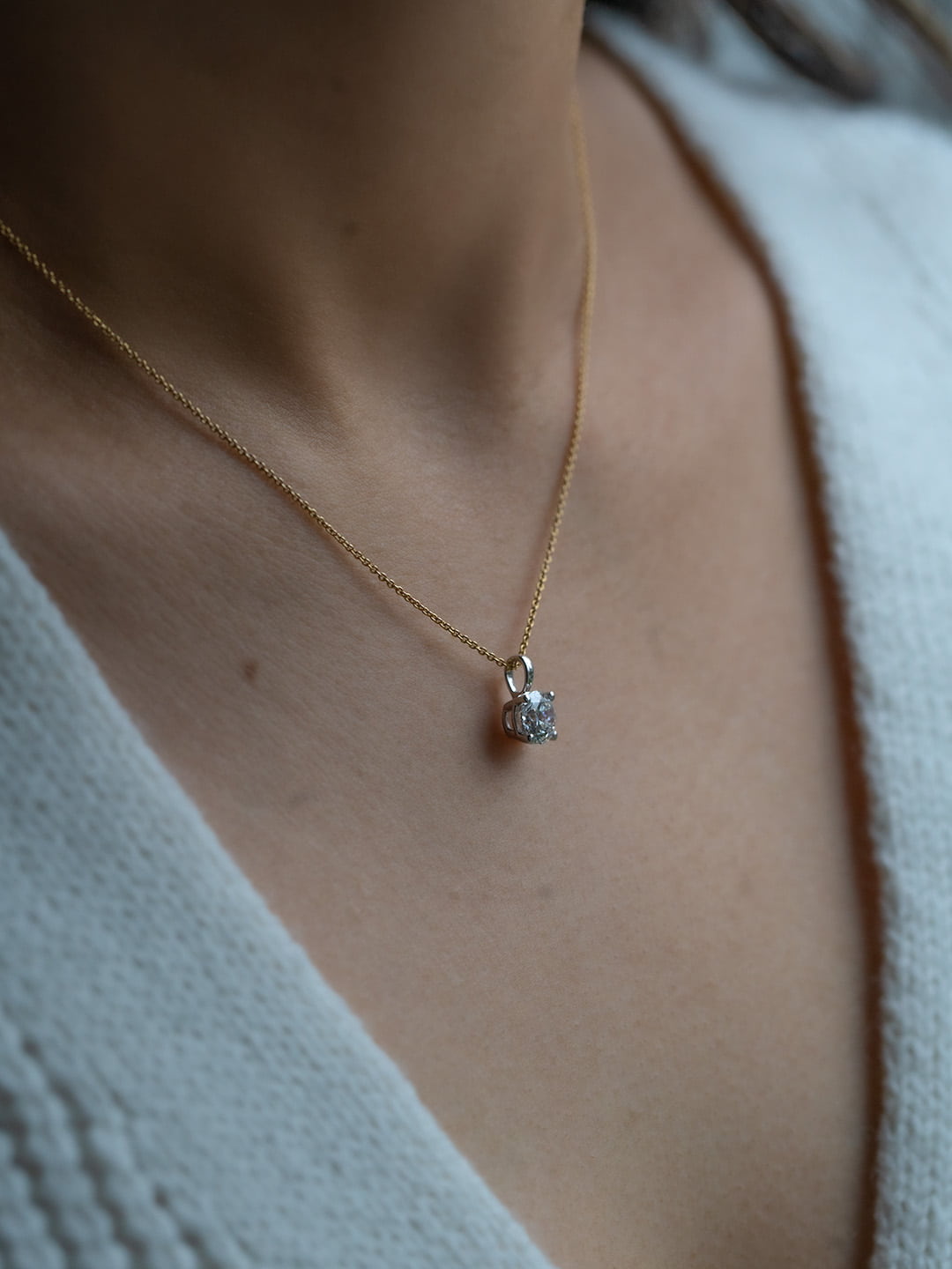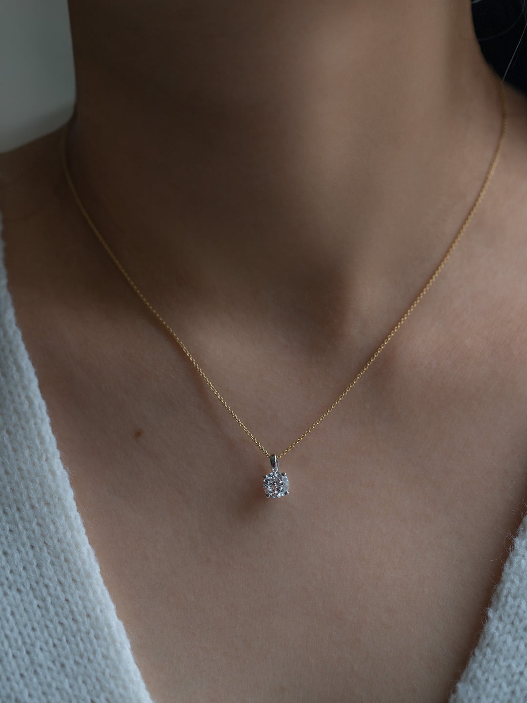 Solitaire Prong-Set Round Diamond Pendant Necklace