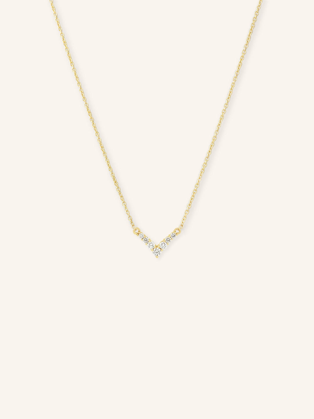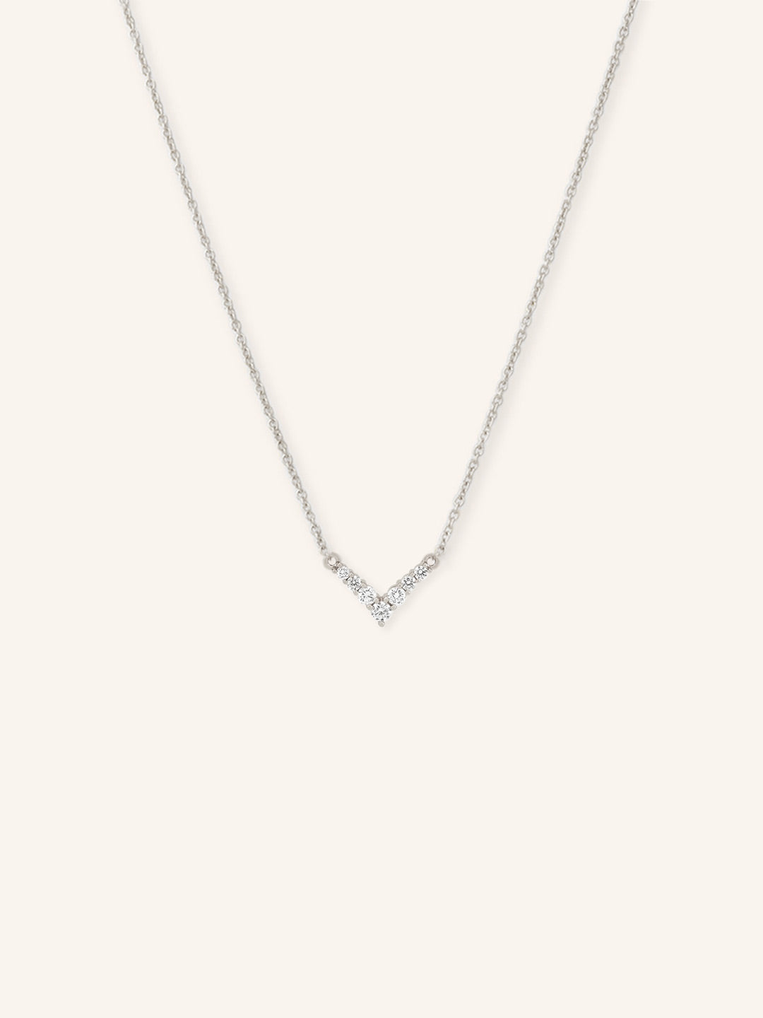 Elegantly designed, the Vespa V Diamond Necklace features a stunning v-shaped diamond accent that radiates a touch of elegance and sophistication. Make a statement on your special day with this timeless piece.