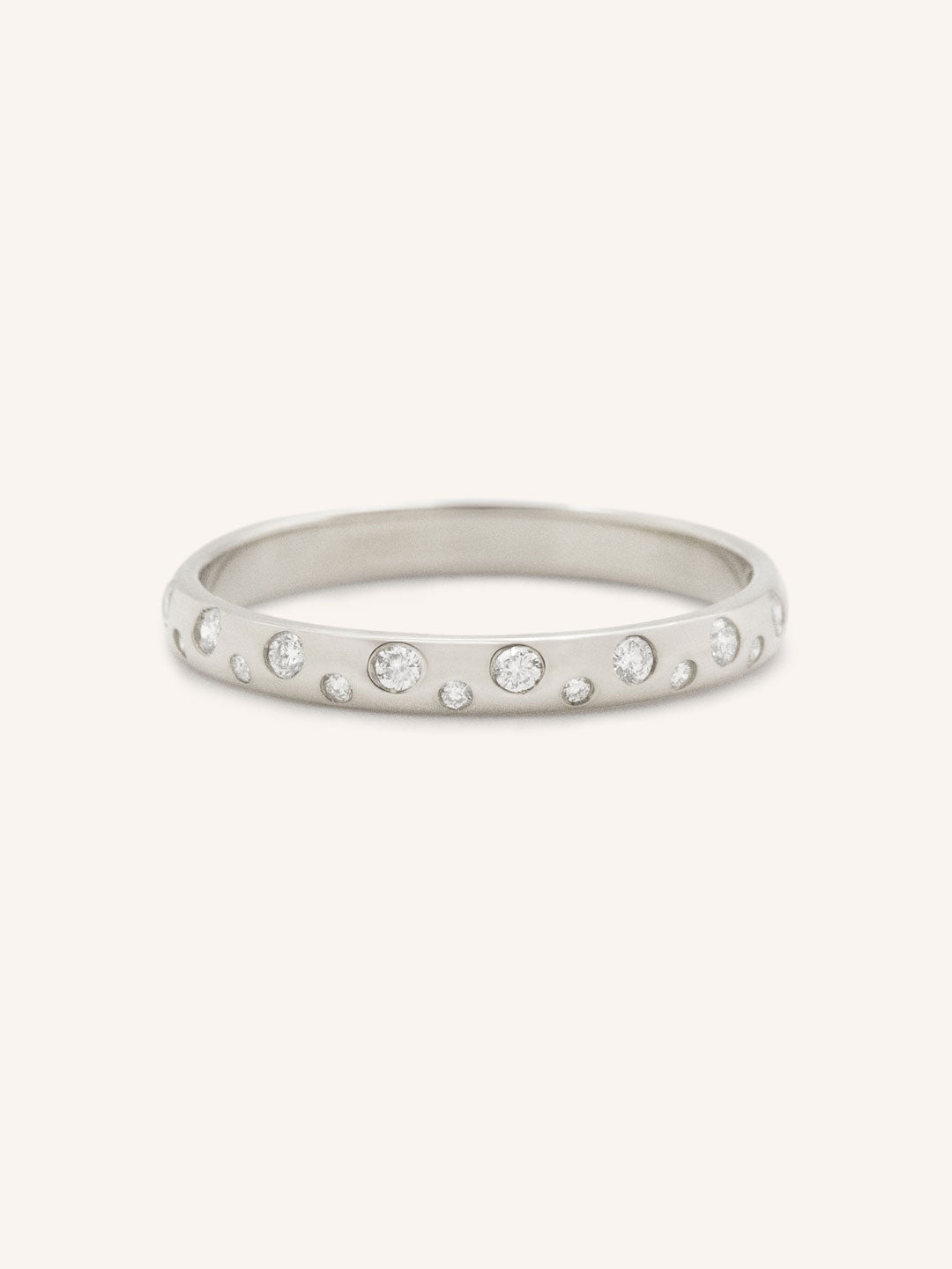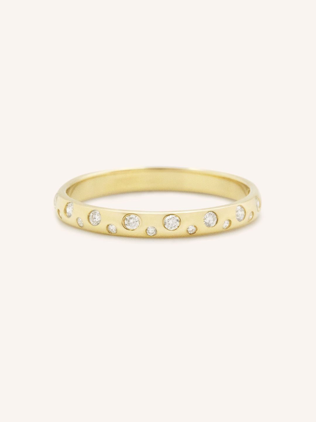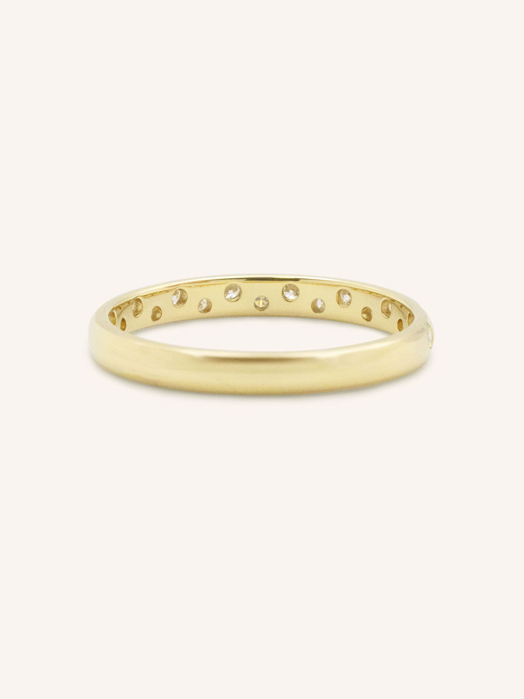 The Margot Gypsy Diamond Wedding Band showcases a unique arrangement of flush-set diamonds within a smooth, domed band. With its vintage-inspired charm and effortlessly sleek design, this ring offers a distinctive yet timeless look for everyday wear.