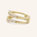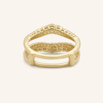 The Bayley Ring Guard brings a bold, contemporary twist to a classic enhancer. Each side features a sleek double-band design, creating a striking frame around your engagement ring while adding extra brilliance. Perfect for elevating your look with modern elegance.